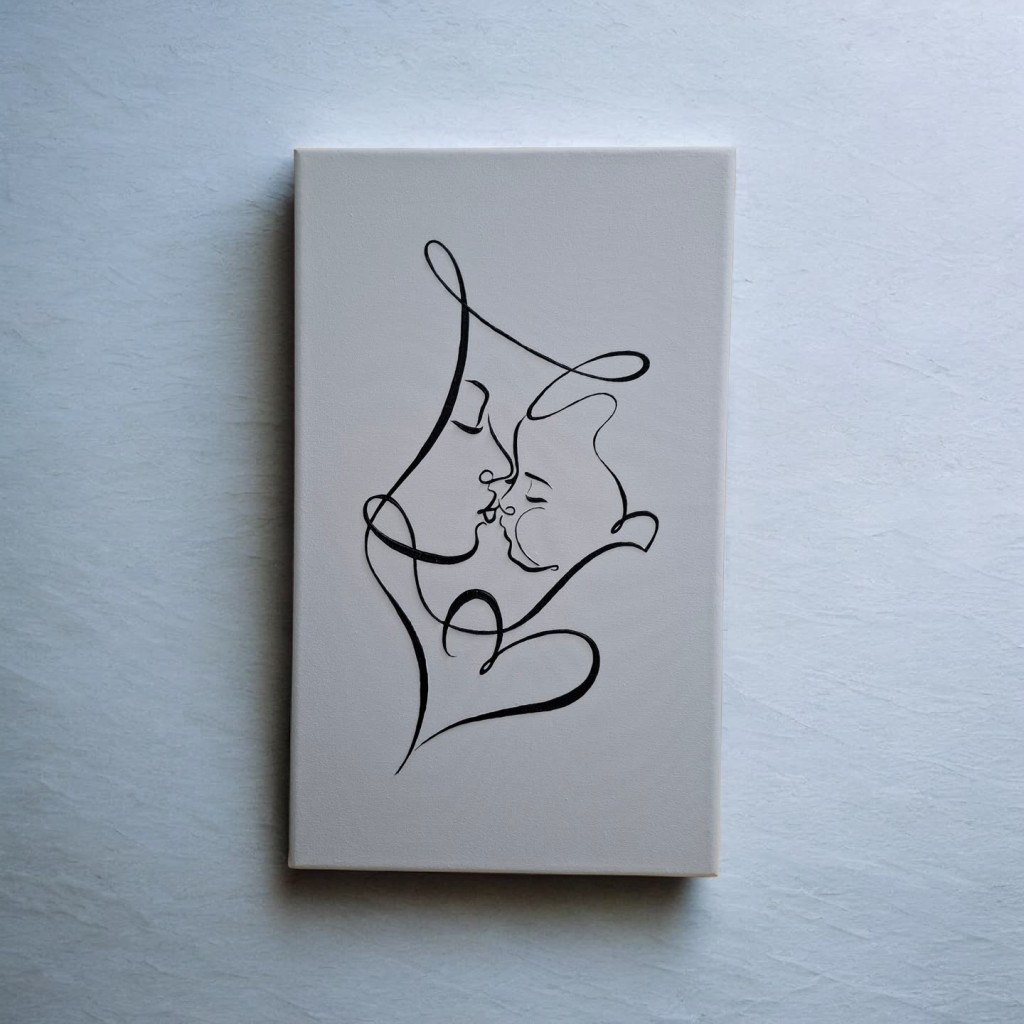 تابلو مینیمال مادر و کودک کار شده در ابعاد 30*50